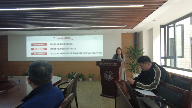 会议邀请了学校财务处审核出纳科张晨副科长、黄林娟老师就学校财务报销业务相关知识进行宣讲和答疑。黄老师介绍了财务处基本情况、相关信息化平台、报销要求和流程、以及常见报销问题。张老师就老师们提出的问题进行了现场解答。通过此次专题宣讲,全院教师进一步了解了相关财经法规知识,熟悉了学校报销业务流程,有助于提高全院教师办理财务相关事务的效率。