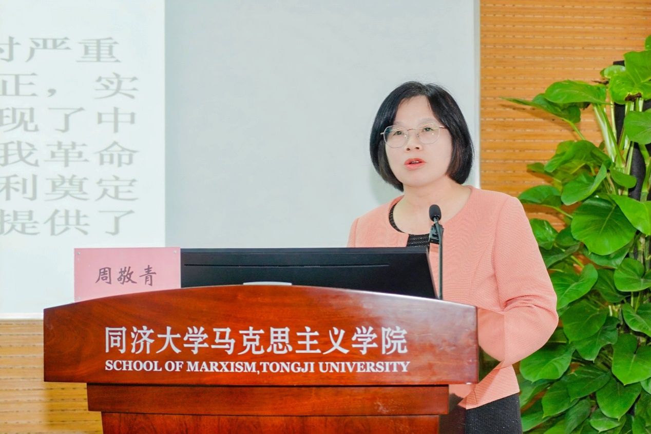 丁俊萍教授以《从党建视角看遵义会议的重大意义》为题,从五个层面来解读遵义会议的重大意义:一是会议打开中国革命新局面和党的建设新局面;二是会议体现出来的党应对危机的精神状态和驾驭复杂局面的领导能力,把党从危局中挽救出来。三是会议发扬民主的理性精神和善于总结经验教训的优良传统,对党的建设具有长远价值。四是会议体现出来的毛泽东思想活的灵魂,对党的建设具有长远指导意义。五是遵义会议精神是以伟大建党精神为源头的中国共产党革命精神谱系重要组成部分,激励全党团结奋斗不断创造新的历史伟业。