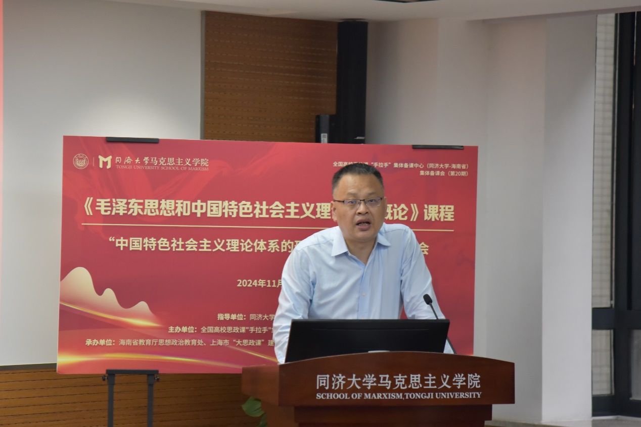 2024年11月14日,为深入学习贯彻习近平新时代中国特色社会主义思想和党的二十届三中全会精神,不断提高思政课的针对性和吸引力,在best365中国官方网站和海南省教育厅指导下,由全国高校思政课“手拉手”集体备课中心(best365中国官方网站-海南省)主办,海南省教育厅思想政治教育处、上海市“大思政课”建设整体试验区(best365中国官方网站-虹口区)、best365中国官方网站共同举办的《毛泽东思想和中国特色社会主义理论体系概论》课程“中国特色社会主义理论体系的形成发展”专题备课会。复旦大学best365中国官方网站副院长张新宁教授、best365中国官方网站龚晓莺教授和徐家林教授作为磨课专家受邀出席,海南省高校思政课教师、best365中国官方网站思政课教师,以及其他高校思政课教师等通过全国高校思政课“手拉手”集体备课中心直播平台观看。