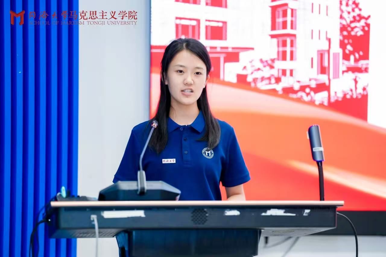 2025级本科生詹天娇代表本科新生发言。她表示,从今天起,“同济”的印记将永久镌刻在各位的人生履历中,“同舟共济”的校训与校风将成为未来的厚重底色。她承诺,未来将沉心静气研读经典、立足实践关注现实、知行合一锤炼本领,努力成长为“政治坚定、业务精湛、作风优良”的青年马克思主义者。