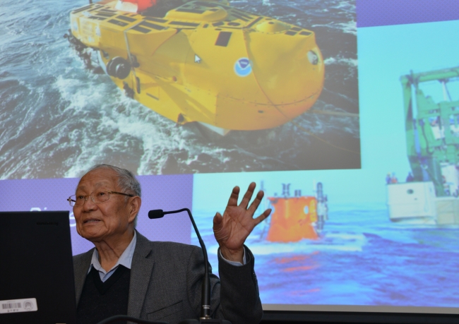汪院士首先从什么是“海洋强国”讲起,他以央视纪录片《大国崛起》为例,指出近代历史上的大国崛起实质是海洋强国的崛起,并介绍了以马汉的“海权论”为代表的海洋强国思想。回顾中国历史,海洋从来没有像今天这样受到重视,特别是近年来,海洋强国已经上升到国家战略的高度。而评判一个国家是否为海洋强国,不光是看它的海军实力,同时要看它的海洋经济与海洋科技,当代“海洋强国”很重要的标志是进入深海远洋、从海面进入海底的能力。为此,他指出,中国建设“海洋强国”必须强在海洋科技,具有高科技才能发展海洋经济和海军实力,同时我们还要加强海洋意识,突破意识形态上长期以大陆国家自居、忽视海洋的传统障碍。