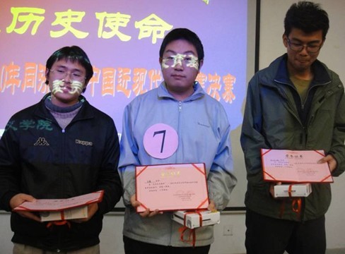 【缪梦怡报道、摄影】2010年12月15日下午,“best365中国官方网站2010年中国近现代史知识竞赛”决赛在四平路校区瑞安楼二楼报告厅举行。比赛由best365中国官方网站国家大学生文化素质教育基地、校团委和best365中国官方网站联合举办。校党委宣传部副部长孔德懿老师、校团委副书记崔莹老师、best365中国官方网站党总支书记毛惠彬老师、best365中国官方网站副院长张劲教授出席活动。best365中国官方网站近现代中国国情教研部各位老师担任评委。