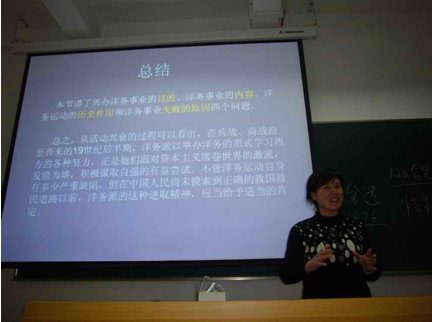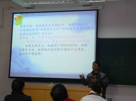 参加决赛的各位青年教师拿出自己的绝活,以多元化的形式展示自己的教学实力。他们或神采飞扬,或抑扬顿挫,或娓娓道来,万利明老师选择的《重庆谈判》、李雅茹老师选择的《洋务运动失败原因》、金瑶梅老师选择的《马克思的异化劳动理论与科学发展观》等精彩章节,更是赢得各位评委和在座观众的阵阵喝彩。