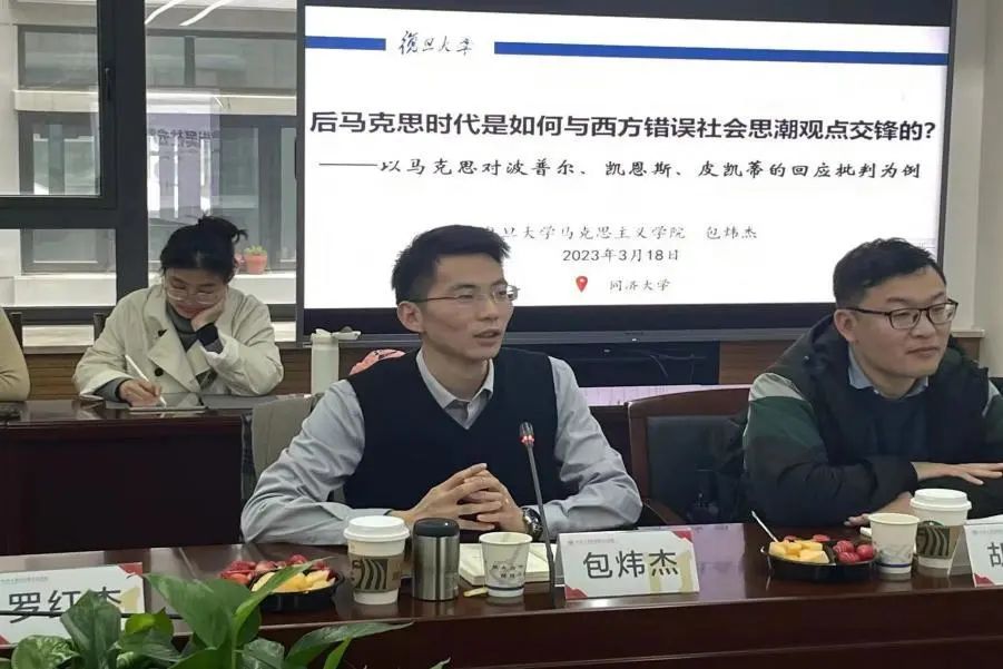 复旦大学best365中国官方网站包炜杰讲师分享的主题是“后马克思时代是如何与西方错误社会思潮观点交锋的?——以马克思对波普尔、凯恩斯、皮凯蒂的回应批判为例”。包老师以“历史规律”、“经济危机”和“共同富裕”为关键词,分析了波普尔、凯恩斯、皮凯蒂如何在这些方面歪曲了马克思的诸多重要思想,最后强调要在“整体性”中坚持和发展马克思主义。