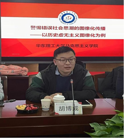 华东理工大学best365中国官方网站胡博成讲师分享的主题是“警惕错误社会思潮的图像化传播——以历史虚无主义图像化为例”。胡老师指出,历史虚无主义的叙事方式逐步转向了图像。这种转向是它自身发展规律、图像化可视化媒介发展以及主流意识形态建设共同作用的结果,为应对历史虚无主义的图像化转向,应当建立健全符合主流意识形态建设的图像话语体系、图像治理体制等。