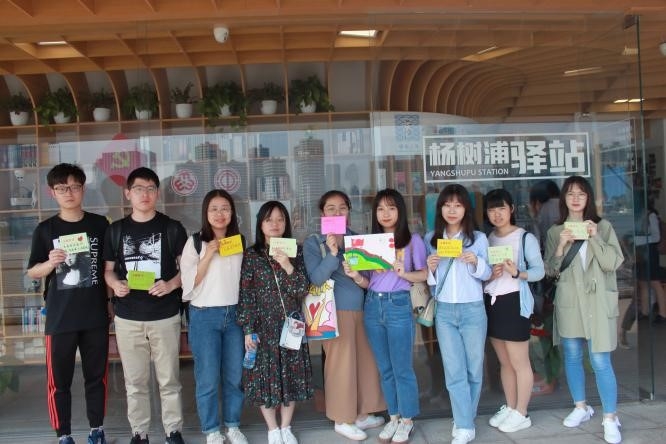 学习的第二站是“大桥人人屋党建服务站”,同学们在工作人员的带领下,乘坐观光游览车参观一整条杨树浦码头长廊,并在沿岸一间“人人屋”前驻足,在讲解员的介绍下,我们了解到这座“人人屋”道德建立是为市民提供一个歇脚地,无论严寒酷暑,走到这里就是找到一片肉体与心灵的净土。它不仅为市民提供了简易的健康设施,还为市民提供一部分阅读书籍,让市民在即将到来的炎炎夏日中感受到一丝清凉。