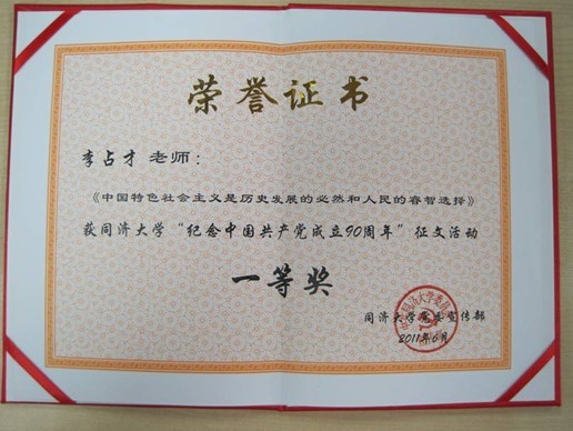 (右二为我院李占才教授,本照片采自校园网“同济快讯”栏目)