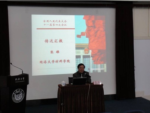 【通讯员于琳霖报道、缪梦怡摄影】2011年04月12日下午,院党总支举行年度师生员工形势报告会,特邀十一届全国人大代表、best365中国官方网站材料学院教授张雄先生传达今年全国“两会”精神。