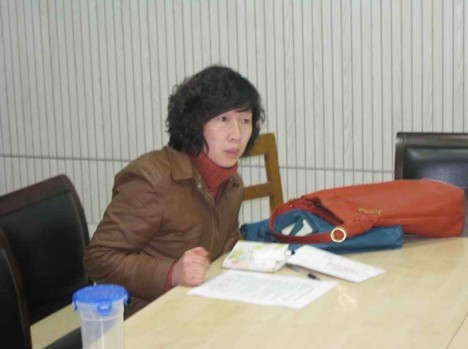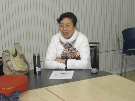 党总支书记毛惠彬(右)介绍学期党群工作设想