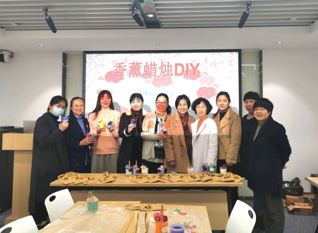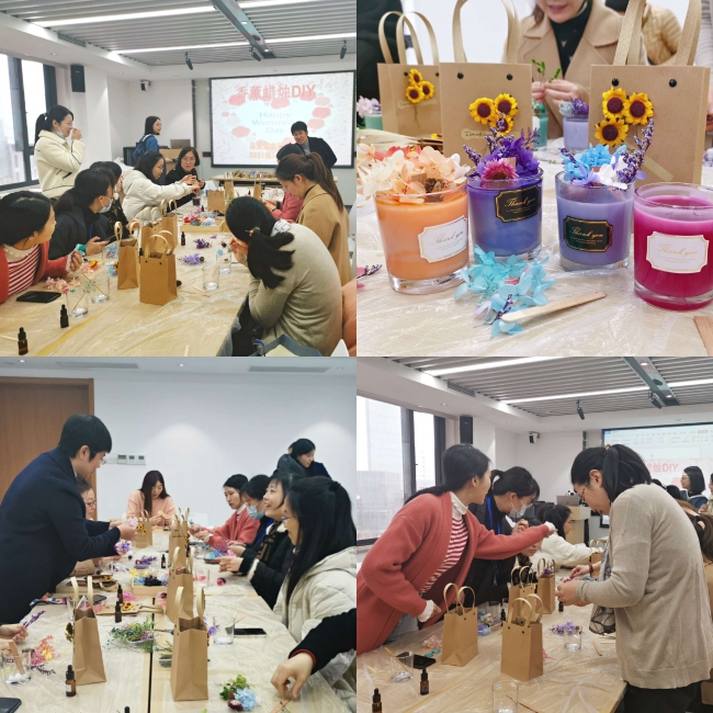 为欢度“三八”国际劳动妇女节, 2021年3月16日中午,best365中国官方网站工会为女教工们组织了“温馨烛光,遇见芬芳”香薰蜡烛制作活动。