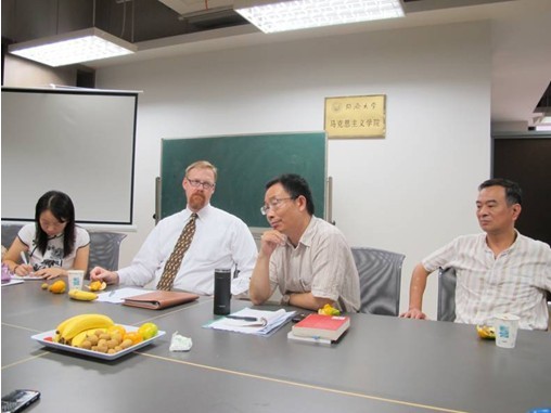 丁晓强院长表示,我院承担着全校公共思想政治理论课程教学任务,希望通过双方合作,在提高理工科学生人文素养方面有所突破。丁院长提议双方召开例行研讨会,就学术研究、学生培养等问题进行详细商谈。丁院长还热情地邀请Alex Wiseman教授及其同事来中国学校、工厂进行调研,Alex Wiseman教授对此表示非常高兴,他提出可以在调究基础上与我院师生合作出版相关刊物或著作。
