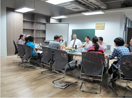 Alex Wiseman教授表示很高兴与我院进行交流与合作,他就双方合作提出了很多宝贵建议。他表示,希望以后能有更多学生和老师前往里海大学进行交流。同时,他提出可以把里海大学教育学院课程表、教学计划、各教师研究方向等内容提供给我院,以便我院学生前去交流时,选择感兴趣的课程和导师。Alex Wiseman教授承诺里海大学教育学院将为我院前往交流的学生提供尽可能多的便利。