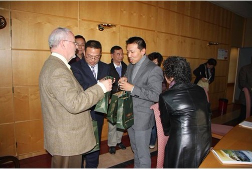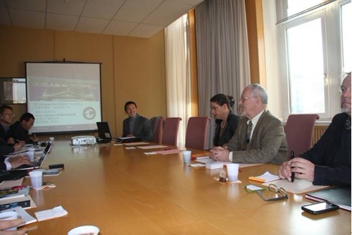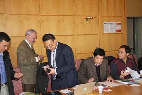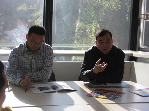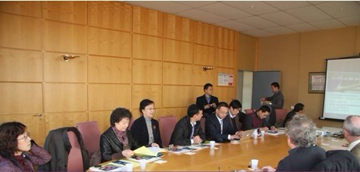 张劲副院长(右)在与巴黎政治学院教师洽谈合作事宜