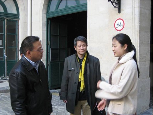 与巴黎政治学院刘中军老师(左二)交谈