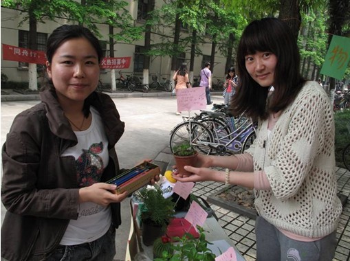 李萌(右)与城规学院同学互换物品