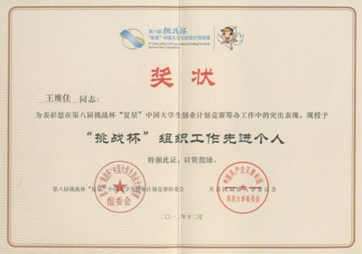 第八届挑战杯“复星”中国大学生创业计划竞赛(决赛)在我校成功举办。我院师生积极响应,投身到志愿者服务工作中去,为学校的荣誉贡献自己的绵薄之力。服务期间,同学们克服困难,团结一致,认真筹备,出色完成了校团委交办的各项工作,得到了领导、老师们的肯定和赞扬。【学工办】