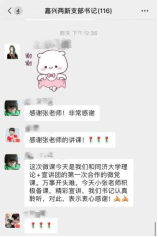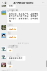 疫情期间,为保障嘉兴路街道探索实践线上党课,宣讲团成员张琪以微信语音“线上党课”的形式,分别于2月25日、26日、28日,在“嘉兴‘两新’流动党员联合微信群”、“‘两新’独立支部书记微信群”、“机关4个直属支部党员微信群”中开展了以《阔步强军新征程,勠力支前战疫情》为主题的3场微党课,积极发挥best365中国官方网站学子的社会担当,积极响应街道主动创新党员教育和管理模式,为引领基层党组织和党员开展防疫防控工作提供有力保障。