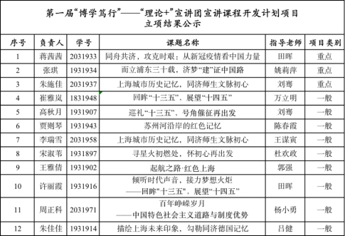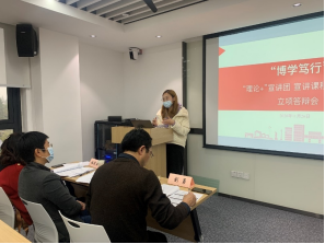 11月26日下午,2020年同济马院 “理论+”宣讲团宣讲课程开发计划立项答辩会在马院大楼401会议室举行。出席本次答辩会的评委有:万立明老师、刘勇老师、殷娣娣老师、姚莉萍老师、陈春霞老师。经同学们自愿申请、个人答辩、评委打分,现将同济马院“博学笃行”——“理论+”宣讲团宣讲课程开发计划立项公示如下: