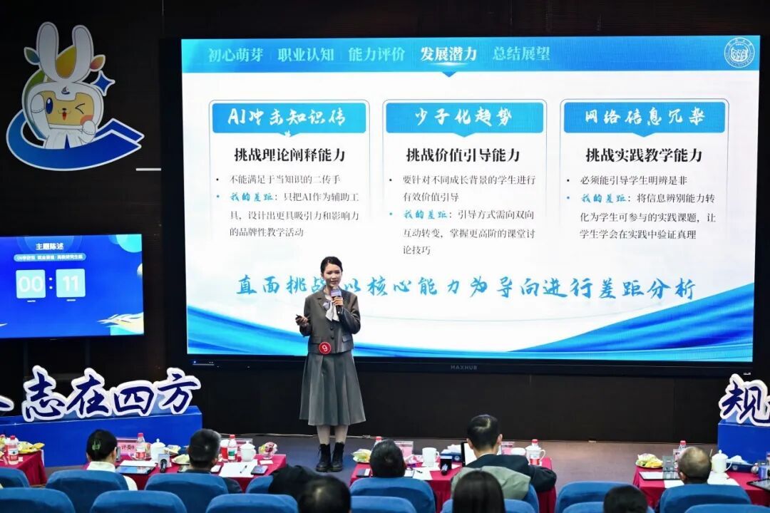 参赛材料提交后,学院开展了书面评审,遴选出推荐至校赛决赛的选手,并为他们提供一对一精细指导,持续优化参赛作品。校赛当天,学院师生齐聚现场,为选手加油助威。