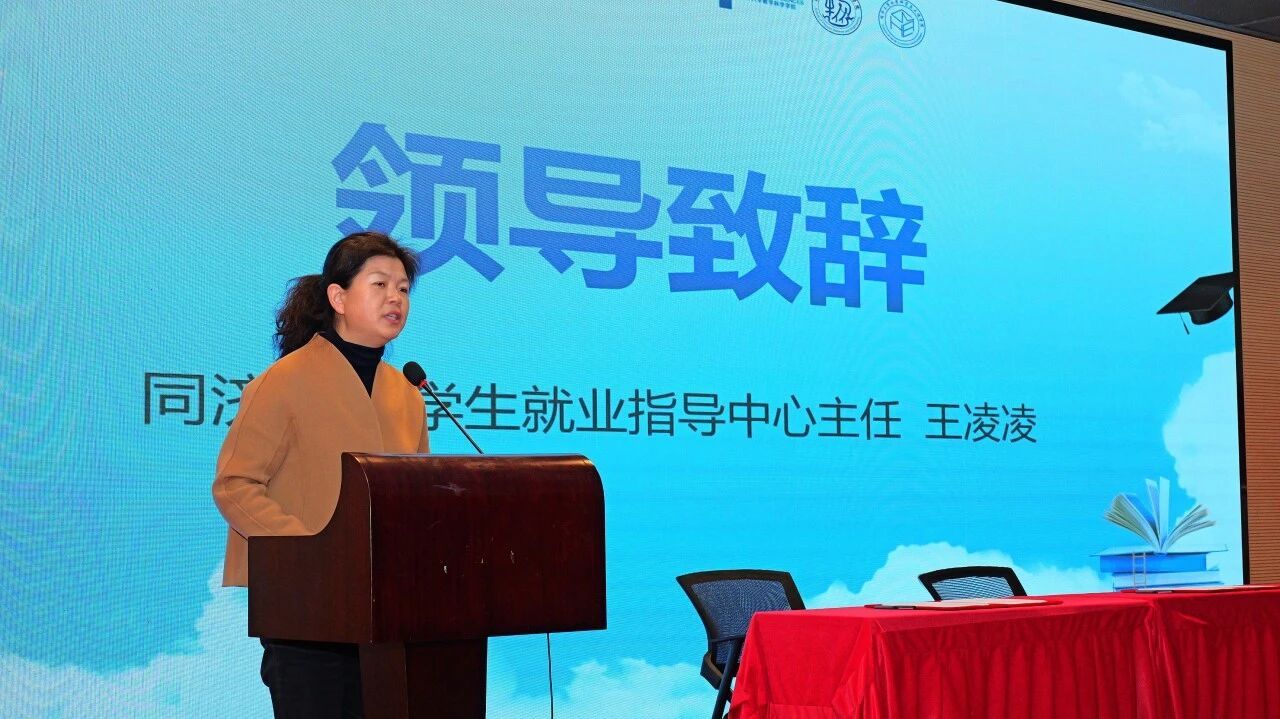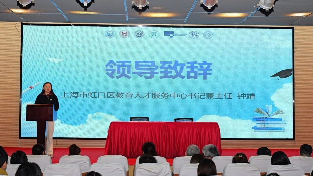 虹口区教育人才服务中心书记兼主任钟靖介绍了虹口区教育发展的蓬勃态势,并向在场学子发出诚挚邀请,期待同济学子带着对教育的热爱,扎根虹口,为上海基础教育事业注入新的活力。